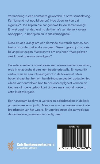 In het boek Hoop denken Tim Vreugdenhil, een dominee die trends spot, en Jeanneke Scholtens, een toekomstonderzoeker die zin geeft, na over de toekomst van de kerk in een samenleving die constant verandert. Samen stellen zij drie vragen: Wat zien we om ons heen? Wat geloven we? Wat doen we vervolgens? Een handzaam boek voor werkers en beleidsmakers in de kerk, professioneel en vrijwillig, maar ook voor kerkvernieuwers in de breedste zin van het woord. En voor iedereen die aanvoelt dat de samenleving nieuwe spirit nodig heeft.