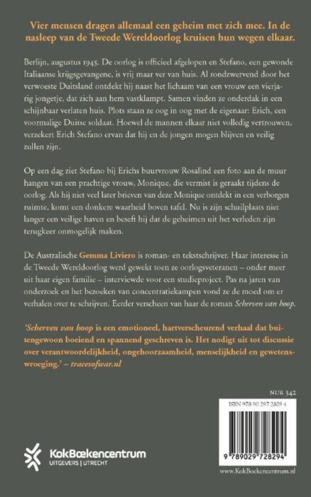 Gemma Liviero kwam op het idee om romans te schrijven over de Tweede Wereldoorlog toen ze veteranen – onder meer uit haar eigen familie – interviewde voor een studieproject. In 2018 verscheen haar roman ‘Scherven van hoop’.