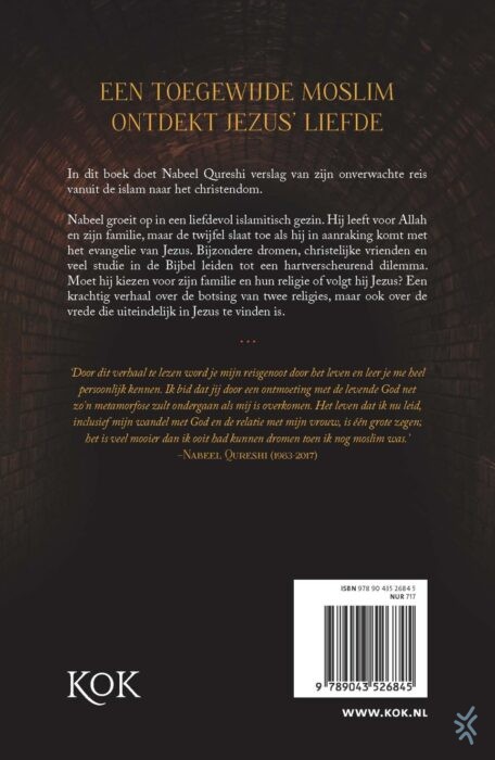 Een nieuwe editie met extra hoofdstukken van ‘Ik zocht Allah en vond Jezus’ van Nabeel Qureshi (1982-2017). Qureshi vertelt in dit boek over zijn bekering tot het christendom. Hij groeit op in een islamitisch gezin, maar dromen, vrienden en veel studie overtuigen hem van de historiciteit van Jezus. Dit boek biedt diepe inzichten in de islam en in de innerlijke strijd van een moslim die zoekt naar de waarheid. Nu met een nawoord van zijn vriend Mark Mittelberg, een terugblik van zijn echtgenote Michelle Qureshi en een gesprek tussen David Wood en Nabeel Qureshi.