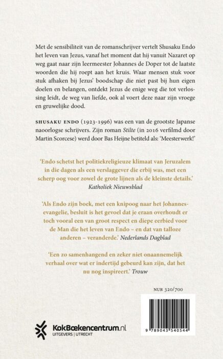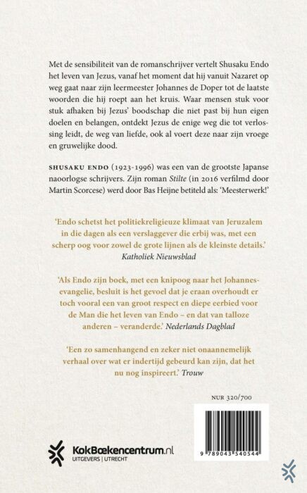 Gebaseerd op een nauwkeurige lezing van de vier evangeliën en met de sensibiliteit van de romanschrijver vertelt Endo het leven van Jezus, vanaf het moment dat hij vanuit Nazareth op weg gaat naar zijn leermeester Johannes de Doper tot de laatste woorden die hij roept aan het kruis. Endo zet de dramatische lijn van Jezus’ leven overtuigend neer: waar mensen stuk voor stuk afhaken bij Jezus’ boodschap die niet past bij hun eigen doelen en belangen, ontdekt Jezus de enige weg die tot verlossing leidt, de weg van liefde, ook al voert deze naar zijn vroege en gruwelijke dood. Kleurrijke karakterportretten van Johannes de Doper, Judas, Petrus, Pilatus, Kajafas, Herodes. Met een reconstructie van Jezus’ laatste dagen en een originele interpretatie van zijn opstanding.