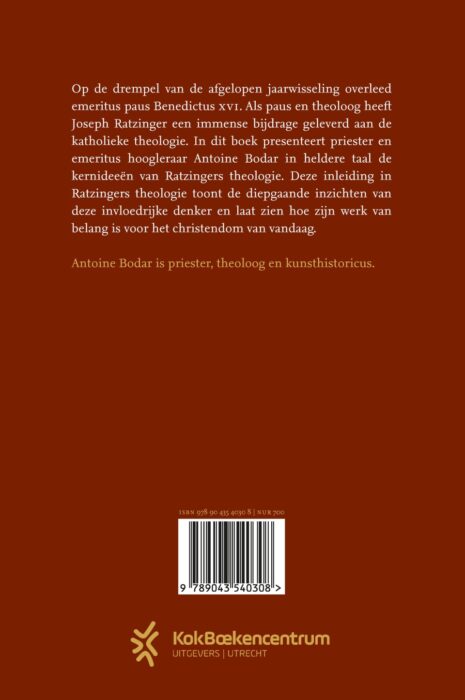 In Joseph Ratzinger presenteert priester en emeritus hoogleraar Antoine Bodar in heldere taal de kernideeën van de theologie van Joseph Ratzinger, emerituspaus Benedictus XVI, die op de drempel van de afgelopen jaarwisseling overleed. Als paus en theoloog heeft Ratzinger een immense bijdrage geleverd aan de katholieke theologie. Deze inleiding in Ratzingers theologie toont de diepgaande inzichten van deze invloedrijke denker en laat zien hoe zijn werk van belang is voor het christendom van vandaag.