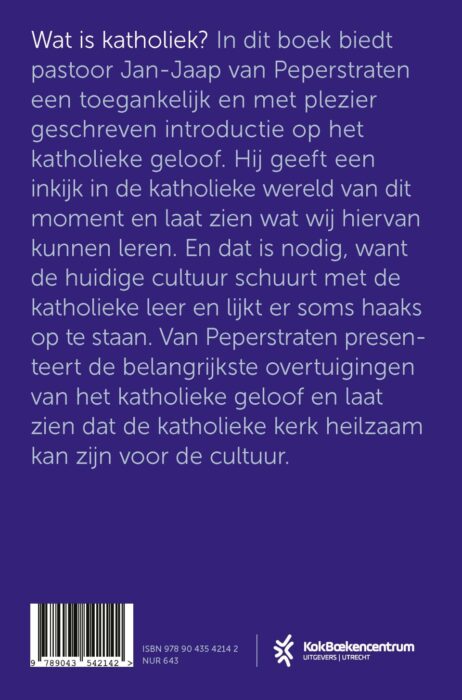 In ‘Katholiek’ presenteert pastoor Jan-Jaap van Peperstraten de belangrijkste overtuigingen van het katholieke geloof. Hij laat zien dat de katholieke kerk heilzaam kan zijn voor de cultuur. Hij geeft een inkijkje in de katholieke wereld van dit moment en laat zien wat wij hiervan kunnen leren. En dat is nodig, want onze huidige cultuur en het katholieke geloof confronteren en bevragen elkaar. Een toegankelijk en met plezier geschreven introductie op het katholieke geloof.