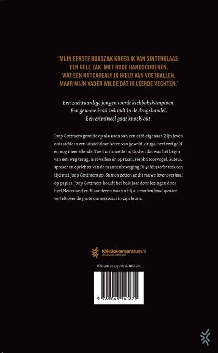 Een zachtaardige jongen wordt kickbokskampioen. Een gewone knul belandt in de drugshandel. Een crimineel gaat knock-out. Joop Gottmers groeide op als zoon van een café-eigenaar. Zijn leven ontaardde in een uitzichtloze keten van geweld, drugs, heel veel geld en nog meer ellende. Toen ontmoette hij God en dat was het begin van een weg terug, met vallen en opstaan. Henk Stoorvogel was oprichter van Athletes in Action Nederland en de mannenbeweging De 4e Musketier. Hij is voorganger van een evangelische gemeente en (mede)auteur van verschillende boeken. Voor Knock-out trok hij een tijd op met Joop Gottmers. Samen zetten ze dit rauwe levensverhaal op papier. Toen ik dit boek begon te lezen, kon ik niet meer stoppen. Ik herkende zoveel, mijn politiehart klopte een versnelling hoger. Diep in de nacht las ik de laatste bladzijde en deed ik het boek met een glimlach dicht. – Meino Dam, politieteam Bergen op Zoom