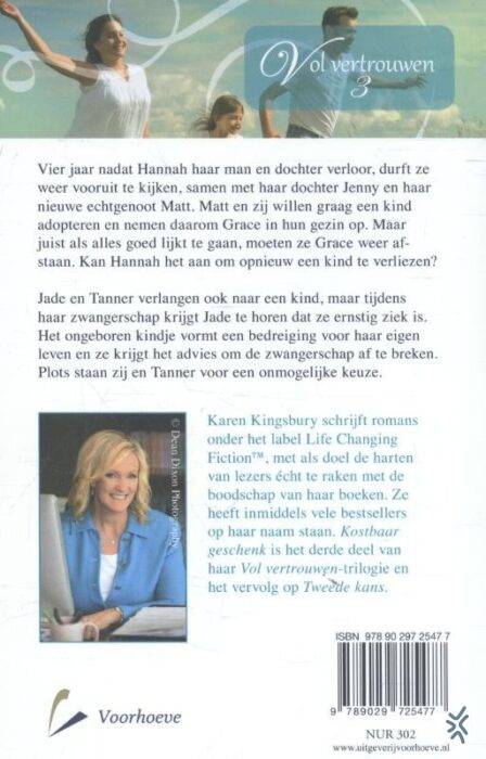 ‘Kostbaar geschenk’ is het derde en laatste deel van de Vol vertrouwen-trilogie. De eerdere delen zijn ‘Wachten op de morgen’ en ‘Tweede kans’.