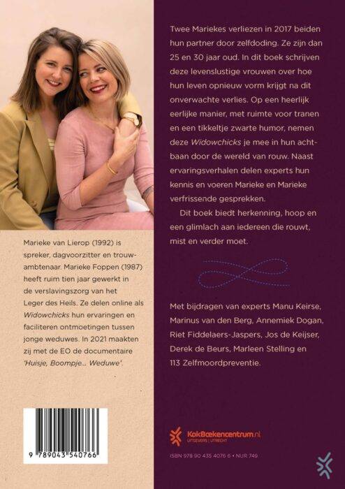 Leven in de rouwerij is het ervaringsverhaal van Marieke Foppen en Marieke van Lierop over het verlies van hun beide mannen door zelfdoding. Wanneer de twee Mariekes in 2017 beiden hun man verliezen door zelfdoding, zijn ze 25 en 30 jaar oud. In hun boek Leven in de rouwerij schrijven deze levenslustige vrouwen op een heerlijk eerlijke manier over hoe hun leven opnieuw vorm krijgt na dit onverwachte verlies, met ruimte voor tranen en een tikkeltje zwarte humor. Als in een reisgids nemen deze Widowchicks de lezer mee in hun achtbaan door de wereld van rouw. Dit boek biedt herkenning, hoop en een glimlach voor iedereen die rouwt, mist en verder moet. Met bijdragen van experts Manu Keirse, Riet Fiddelaers, Marinus van den Berg, Derek de Beurs, Jos de Keijser, Annemiek Dogan, Marleen Stelling en 113 Zelfmoordpreventie.