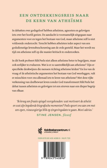 In dit boek probeert Rik Peels niet alleen atheïsme beter te begrijpen, maar ook eerlijker te evalueren. Wat is er zo aantrekkelijk aan atheïsme? Zijn er specifieke denkwijzen die mensen richting atheïsme leiden? En los van de vraag of de atheïstische argumenten het bestaan van God weerleggen, valt er misschien iets te leren van atheïsme voor ons allemaal? Met deze rijke verkenning van doelbewust leven zonder God transformeert Rik Peels het debat tussen atheïsten en gelovigen tot een streven naar een dieper begrip van elkaar.