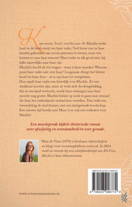 'Kapernaüm, Israël, rond het jaar 30.' Machla werkt hard in de leerlooierij van haar vader. Veel liever zou ze haar handen gebruiken om mooie patronen te weven, maar wie luistert er naar haar wensen? Haar vader in elk geval niet, hij kijkt nauwelijks naar haar om.