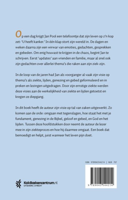 In 'Mij ontbreekt niets' vertelt oud-voorganger en spreker Jan Pool over zijn persoonlijke ziekteproces en Gods aanwezigheid in het lijden. Wanneer Jan Pool hoort dat hij kanker heeft, stort zijn wereld in. Om houvast te vinden begint hij te schrijven: eerst korte updates, later dit boek. Als voorganger sprak hij vaak over ziekte, lijden, genezing en gebed. Zijn eigen ziekte stelt deze overtuigingen op de proef en geeft ze nieuwe diepgang. In dit boek deelt Jan zijn inzichten over omgaan met tegenslagen, je fundament, geloof, gebed en genezing. Een boek vol herkenbare emoties, wijsheid en bemoediging voor mensen die, net als de auteur, ernstig ziek zijn.