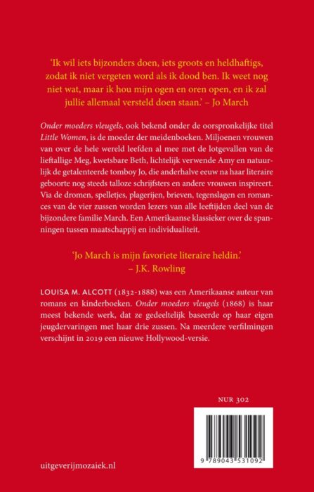 De zusjes March: wie kent ze niet? De lieftallige Meg, kwetsbare Beth, lichtelijk verwende Amy en natuurlijk de getalenteerde tomboy Jo die anderhalve eeuw na haar literaire geboorte nog steeds talloze schrijfsters en andere vrouwen inspireert, zoals J.K. Rowling en Barbara Kingsolver. Via de dromen, spelletjes, plagerijen, brieven, tegenslagen en romances van de vier zussen worden vrouwen over de hele wereld en van alle leeftijden deel van de bijzondere familie March. Een Amerikaanse, feministische klassieker over de spanningen tussen maatschappij en individualiteit.