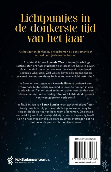 De donkerste maand van het jaar leent zich bij uitstek om te lezen. In deze kerstnovellebundel zijn drie winterse novelles opgenomen van bekende auteurs uit ons fonds: Sarah Sundin, Amanda Barratt en Amanda Wen. Om cadeau te geven of gewoon zelf te houden. Omdat wegdromen bij een romantisch verhaal het fijnste is wat er bestaat, zeker als het buiten koud is. En ook na de feestdagen zijn deze historische novelles een heerlijk tijdverdrijf!