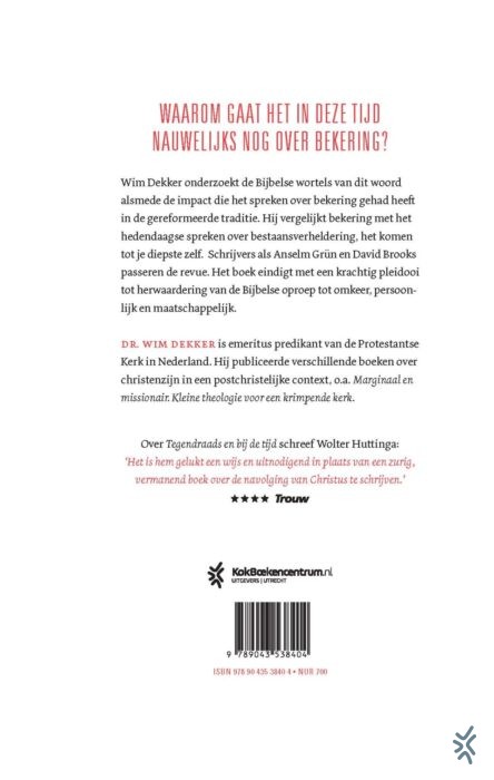 Oproep tot omkeer van Wim Dekker is een interessant theologisch boek over bekering. Waarom gaat het in deze tijd nauwelijks nog over bekering? Wim Dekker onderzoekt de Bijbelse wortels van dit woord alsmede de impact die het spreken over bekering gehad heeft in de gereformeerde traditie. Hij vergelijkt bekering met het hedendaagse spreken over bestaansverheldering, het komen tot je diepste zelf. Schrijvers als Anselm Grün en David Brooks passeren de revue. Het boek eindigt met een krachtig pleidooi tot herwaardering van de Bijbelse oproep tot omkeer, persoonlijk en maatschappelijk.
