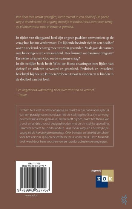 'Over troosten en verdriet' van Wim ter Horst is een christelijke klassieker. Een boek voor mensen die te maken hebben met diepgaand lijden en die zoeken naar een passend antwoord. Traditionele antwoorden zijn niet altijd toereikend. Ter Horst reikt veel doe-mogelijkheden aan die vaak over het hoofd worden gezien door hen die troost zoeken en door hen die het willen bieden.