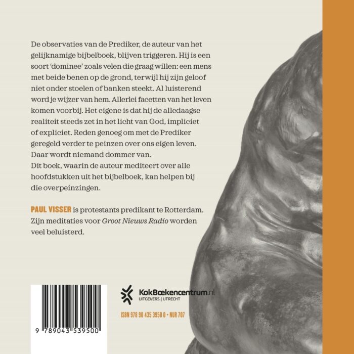 In Peinzen met Prediker mediteert predikant Paul Visser op het leven aan de hand van hoofdstukken uit het bijbelboek Prediker. De observaties van de Prediker, de auteur van het gelijknamige bijbelboek, blijven triggeren. Hij is een soort ‘dominee’ zoals velen die graag willen: een mens met beide benen op de grond, terwijl hij zijn geloof niet onder stoelen of banken steekt. Al luisterend word je wijzer van hem. Allerlei facetten van het leven komen voorbij. Het eigene is dat hij de alledaagse realiteit steeds zet in het licht van God, impliciet of expliciet. Reden genoeg om met de Prediker geregeld verder te peinzen over ons eigen leven. Daar wordt niemand dommer van.