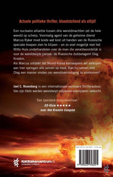 ‘Russische roulette’ is een internationale politieke thriller van bestsellerauteur Joel C. Rosenberg. Een nucleaire alliantie tussen drie wereldmachten zet de hele wereld op scherp. De schrikwekkende alliantie tussen Rusland, Iran en Noord-Korea staat op scherp. Marcus Ryker moet koste wat kost uit handen van de Russische speciale troepen zien te blijven – en zo snel mogelijk met het Witte Huis onderhandelen over de man die verantwoordelijk is voor de wereldwijde paniek: de Russische dubbelagent Oleg Kraskin. Als Marcus ontdekt dat Noord-Korea kernwapens wil verkopen aan Iran springen alle seinen op rood. Kan hij samen met Oleg een manier vinden om wereldvernietiging te voorkomen?