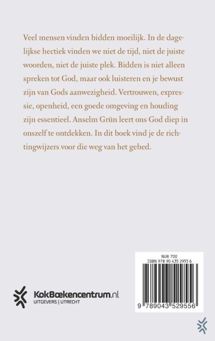 ‘School van het gebed’ van Anselm Grün is een inspirerend boek met aanwijzingen en oefeningen om te bidden. Veel mensen vinden bidden moeilijk. In de dagelijkse hectiek vinden we de tijd niet, niet de juiste woorden, niet de juiste plek. Bidden is niet alleen spreken tot God, maar ook luisteren en je bewust zijn van Gods aanwezigheid. Vertrouwen, expressie, openheid, een goede omgeving en houding zijn essentieel. Met dit boek leer je God diep in jezelf te ontdekken. Anselm Grün is benedictijner monnik en auteur van vele bestsellers op het gebied van spiritualiteit en geloof. Bij uitgeverij Kok verschenen in dezelfde serie o.a. ‘Vasten. Je innerlijke bron vinden’ en ‘Leven uit de stilte’.