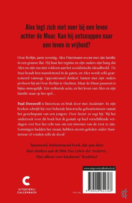 ‘Sector 20’ van Paul Dowswell is een spannend boek over spionage in de DDR. Alex woont in Oost-Berlijn. De Koude Oorlog is op haar hoogtepunt en Alex en z'n familie mogen de stad niet verlaten. Maar Alex is geen modelburger, en de Stasi houdt hem nauwlettend in de gaten. Alex krijgt te horen dat hij niet langer naar school mag, en zijn vakantiebaantje wordt op mysterieuze wijze opgezegd. Zijn ouders realiseren zich dat vluchten uit Oost-Duitsland misschien wel de enige mogelijkheid is. Maar de Muur passeren is bijna onmogelijk. En zelfs als het Alex en zijn familie lukt om te ontsnappen, is het dan mogelijk om uit de greep van de Stasi te blijven? Eén verkeerde actie, en het leven van Alex en zijn familie staat op het spel.