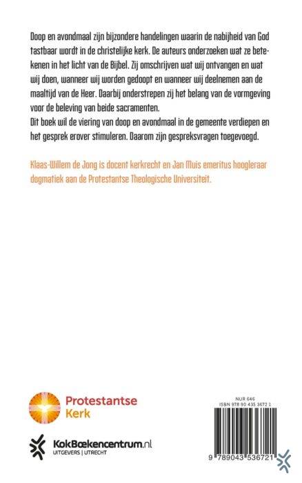 'Tastbare nabijheid' van Klaas-Willem de Jong en Jan Muis is een boek over de doop en het avondmaal, geschikt voor het gesprek in de gemeente. Doop en avondmaal zijn bijzondere handelingen waarin de nabijheid van God tastbaar wordt in de christelijke kerk. De auteurs onderzoeken wat ze betekenen in het licht van de Bijbel. Zij omschrijven wat wij ontvangen en wat wij doen, wanneer wij worden gedoopt en wanneer wij deelnemen aan de maaltijd van de Heer. Daarbij onderstrepen zij het belang van de vormgeving voor de beleving van beide sacramenten.