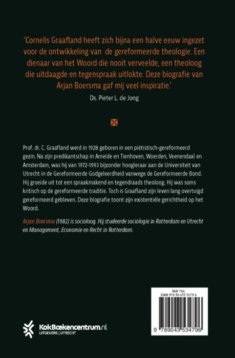 ‘Tegendraads gereformeerd’ is een passende titel voor de biografie van de geliefde theoloog C. Graafland, inspirator van de gereformeerde gezindte. Prof. dr. C. Graafland werd in 1928 geboren in een piëtistisch-gereformeerd gezin. Na zijn predikantschap in Ameide en Tienhoven, Woerden, Veenendaal en Amsterdam, was hij van 1972-1993 bijzonder hoogleraar aan de Universiteit van Utrecht in de Gereformeerde Godgeleerdheid vanwege de Gereformeerde Bond. Hij groeide uit tot een spraakmakend en tegendraads theoloog. Hij was soms kritisch op de gereformeerde traditie. Toch is Graafland zijn leven lang overtuigd gereformeerd gebleven. Deze biografie toont zijn existentiële gerichtheid op het Woord.