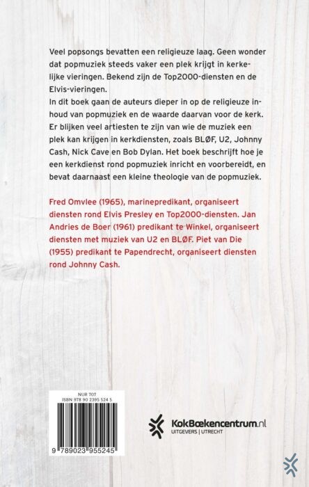Van Elvis-viering tot U2-dienst van Fred Omvlee, Jan Andries de Boer en Piet van Die beschrijft hoe je een kerkdienst rond popmuziek inricht en voorbereidt. Veel popsongs bevatten een religieuze laag. Geen wonder dat popmuziek steeds vaker een plek krijgt in kerkelijke vieringen. Bekend zijn de Top2000-diensten en de Elvis-vieringen. In dit boek gaan de auteurs dieper in op de religieuze inhoud van popmuziek en de waarde daarvan voor de kerk. Er blijken veel artiesten te zijn van wie de muziek een plek kan krijgen in kerkdiensten, zoals BLØF, U2, Johnny Cash en Bob Dylan. Het boek sluit af met een kleine theologie van de popmuziek.