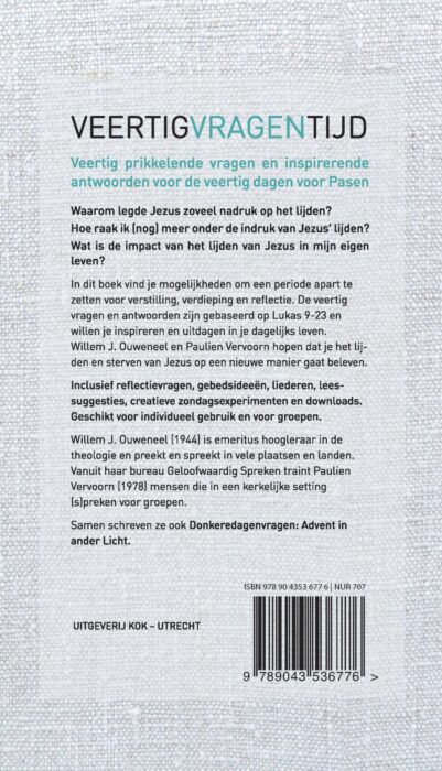 Veertigvragentijd is samengesteld door de bekende publicist en spreker Willem J. Ouweneel en spreker/coach Paulien Vervoorn.