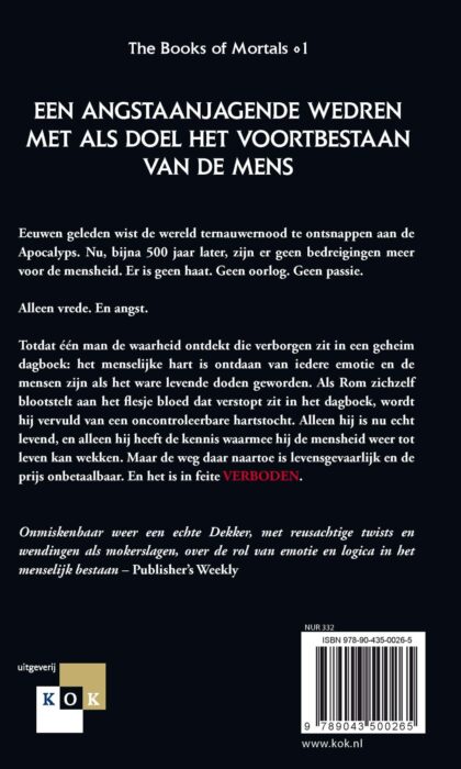 Eeuwen geleden wist de wereld ternauwernood te ontsnappen aan de Apocalyps. Nu heerst overal vrede. Ziekte en honger bestaan niet meer. Dan ontdekt Rom de onthutsende waarheid: de mensen die op aarde rondlopen zijn al dood, hun DNA is ontdaan van wat hun tot mens maakt. Hij is de enige die de mensheid weer tot leven kan wekken. Maar dat is levensgevaarlijk en er moet een torenhoge prijs voor betaald worden. Want het menselijk leven zelf is verboden.