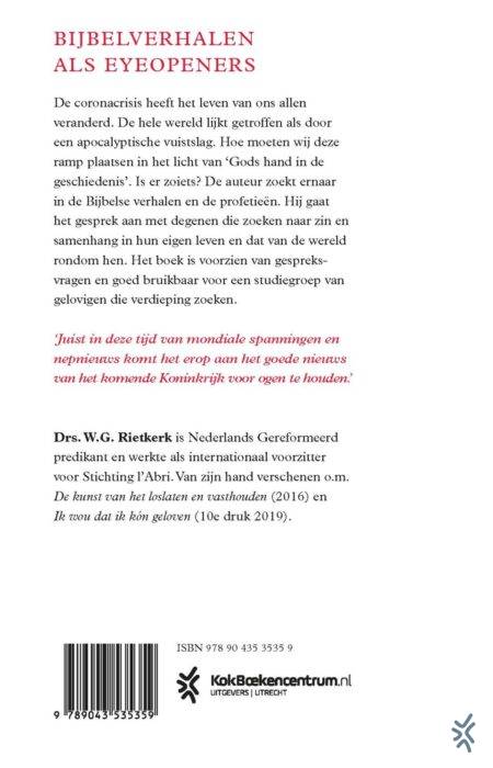 In zijn langverwachte, nieuwe boek ‘Verborgen aanwezig’ laat Wim Rietkerk zien welke rol God speelt op het wereldtoneel. De coronacrisis heeft het leven van ons allen veranderd. De hele wereld lijkt getroffen als door een apocalyptische vuistslag. Hoe moeten wij deze ramp plaatsen in het licht van ‘Gods hand in de geschiedenis’; is er zoiets? De auteur zoekt ernaar in de Bijbelse verhalen en de profetieën. Hij gaat het gesprek aan met degenen die zoeken naar zin en samenhang in hun eigen leven en dat van de wereld rondom hen. Het boek is voorzien van gespreksvragen en goed bruikbaar voor een studiegroep van gelovigen die verdieping zoeken.