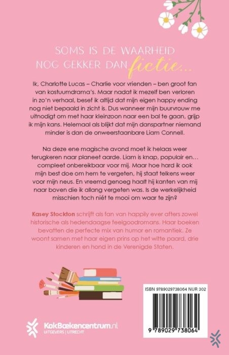In de heerlijke feelgoodroman 'Verstrikt in fictie' volgt Kasey Stockton het leven van de 26-jarige Charlotte Lucas (Charlie voor vrienden), die groot fan is van kostuumdrama's. Tegelijk benadrukken deze verhalen pijnlijk het uitblijven van haar eigen happy ending. Haar grootste angst: eindigen als oude vrijster, net als haar naamgenoot uit 'Pride & Prejudice'.