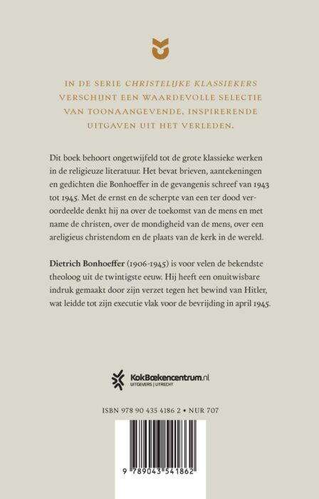 ‘Verzet en overgave’ van Dietrich Bonhoeffer behoort ongetwijfeld tot de grote klassieke werken in de religieuze literatuur. Het boek bevat de aantekeningen, brieven en gedichten die Bonhoeffer in de gevangenis schreef van 1943 tot 1945. Met de ernst en scherpte van een ter dood veroordeelde denkt hij na over de toekomst van de mens en met name de christen, over de mondigheid van de mens, over een areligieus christendom en de plaats van de kerk in de wereld. Een tijdloos meesterwerk!