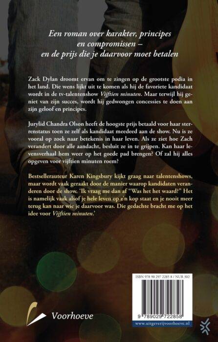 Vijftien minuten van Karen Kingsbury vertelt het aangrijpende verhaal van countryzanger Zack Dylan. Als zijn droom uitkomt, is hij ervan overtuigd dat de roem hem niet zal veranderen.