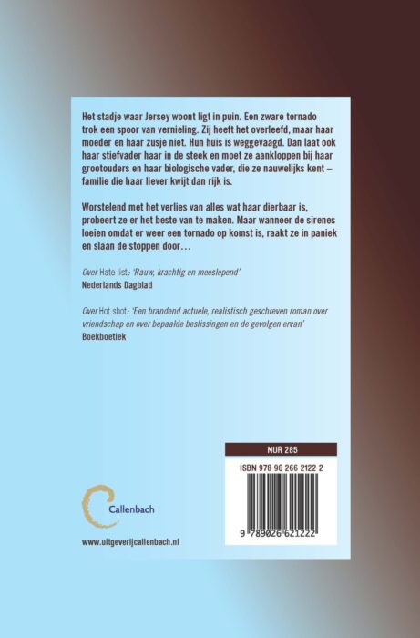 Jennifer Brown kan als geen ander de emotionele en psychologische ontwikkelingen van haar hoofdpersonen onder woorden brengen. ‘Wild storm’ is haar nieuwe aangrijpende roman, die zich afspeelt tijdens de nasleep van een allesverwoestende tornado. Een verhaal over verlies, rouw en de betekenis van familie. Eerder verschenen van Jennifer Brown de young adult-romans ‘Hate list’, ‘Bitter love’ en ‘Hot shot’.